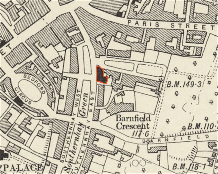 The church grew in numbers and in the middle of the 19th Century it was decided to build a new church on the site of the old Southernhay Bath House, at the corner of Dixs Field, and the foundation stone layed on 25 June 1868. Beneath was placed a bottle containing a selection of London and local newspapers, coins and a list of names of the members of the committee. The silver trowel used to lay the stone was presented by Mrs. Alfred Evan of St. David's Hill. A dinner was given, after the ceremony, at the Royal Public Rooms.
