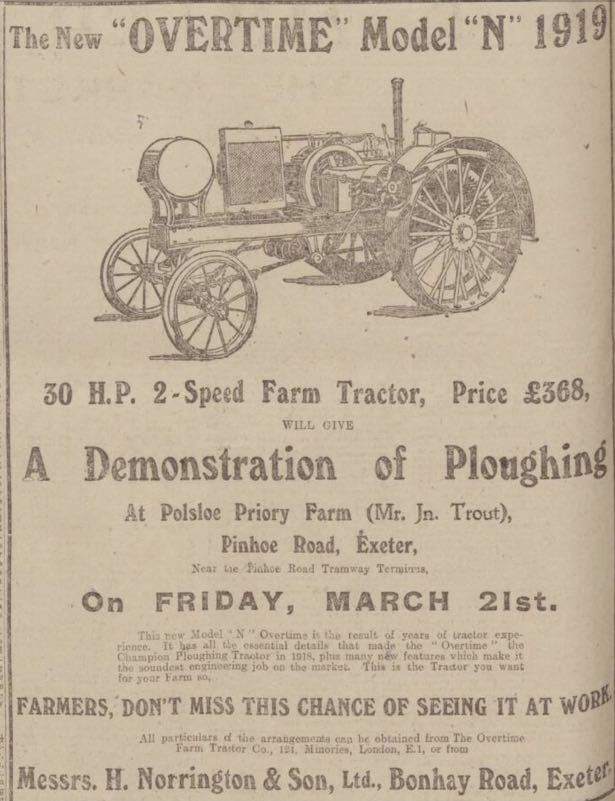 Chas. Headon was summoned for driving a car at Pinhoe without a red