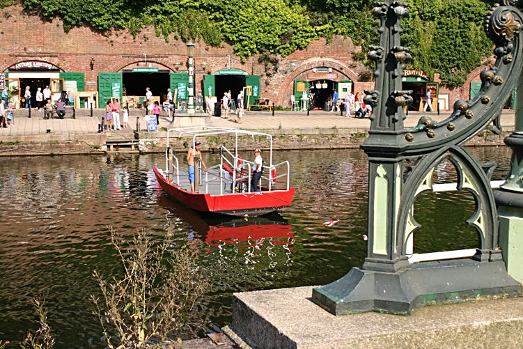 The Maritime Museum built a new ferry in 1978, and the ferryman, Mr Harry Andrews conveyed Prince Philip across the Exe for its first outing, when he visited the museum. Reg Lyon, also a ferryman, assisted with the crossing. By 1991, the ferry was transferred to the basin for exclusive use by the museum, and a new boat installed on the Exe crossing, this time run by Peter Hocking, who ran the well known Southern Comfort, which gave visitors trips to the Double Locks in the summer. (4)