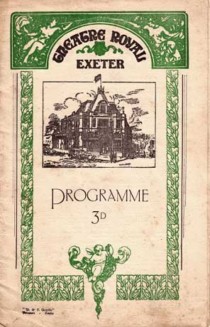 The first pantomime at the theatre was Jack and the Beanstalk in 1889 and the last, Ali Baba in 1961. It is interesting to note how the cover of the programme for the pantomime seemed to burst out in colour after the war, a reaction to the more formal pre war period, and the austerity of the forties. See 1950s for examples of covers. Coaches full of excited children and anxious parents would pull up at the theatre from all over Devon during the pantomime season - for many it was their only visit of the year to Exeter. From 1909 until his death in 1940, Percy Dunsford produced the annual pantomime. From 1945, the cigar smoking, portly, Cliff Gwilliam, the former manager of the Odeon in Sidwell Street, was responsible for the theatre until it closed.